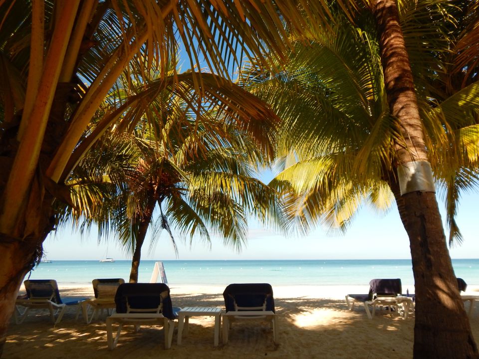 Situated on a wide expanse of white sand beach dotted with palm trees in negril, jamaica.